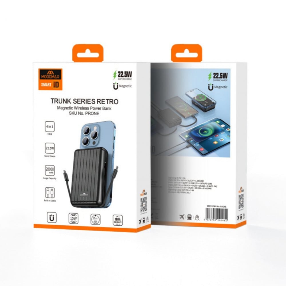 بطارية متنقلة 20 الف ماق سيف مع 2 كيابل مدمجة من موج ماكس